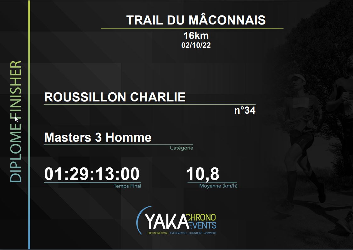 Dimanche 2 octobre 2022 – Dernière manche du challenge Bourgogne Sud, 9ᵉ place scratch, 2ᵉ M3 sur le 16 km.